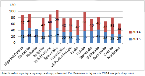 Uviedli veľmi vysoký a vysoký rastový potenciál. Pri Rakúsku údaj za rok 2014 nie je k dispozícii.