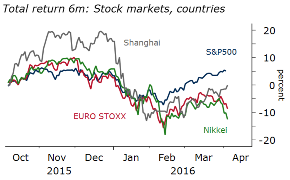 No aj napriek tomuto prístup sa americkému akciovému indexu S&P 500 podarilo s rastom o 2,9 percenta prekonať ostatné trhy, keď európsky index Eurostoxx 50 spadol o 4,7 percenta a japonský Topix až o 9,9 percenta. Dôvodom bol dopad menových posunov na výnosy.