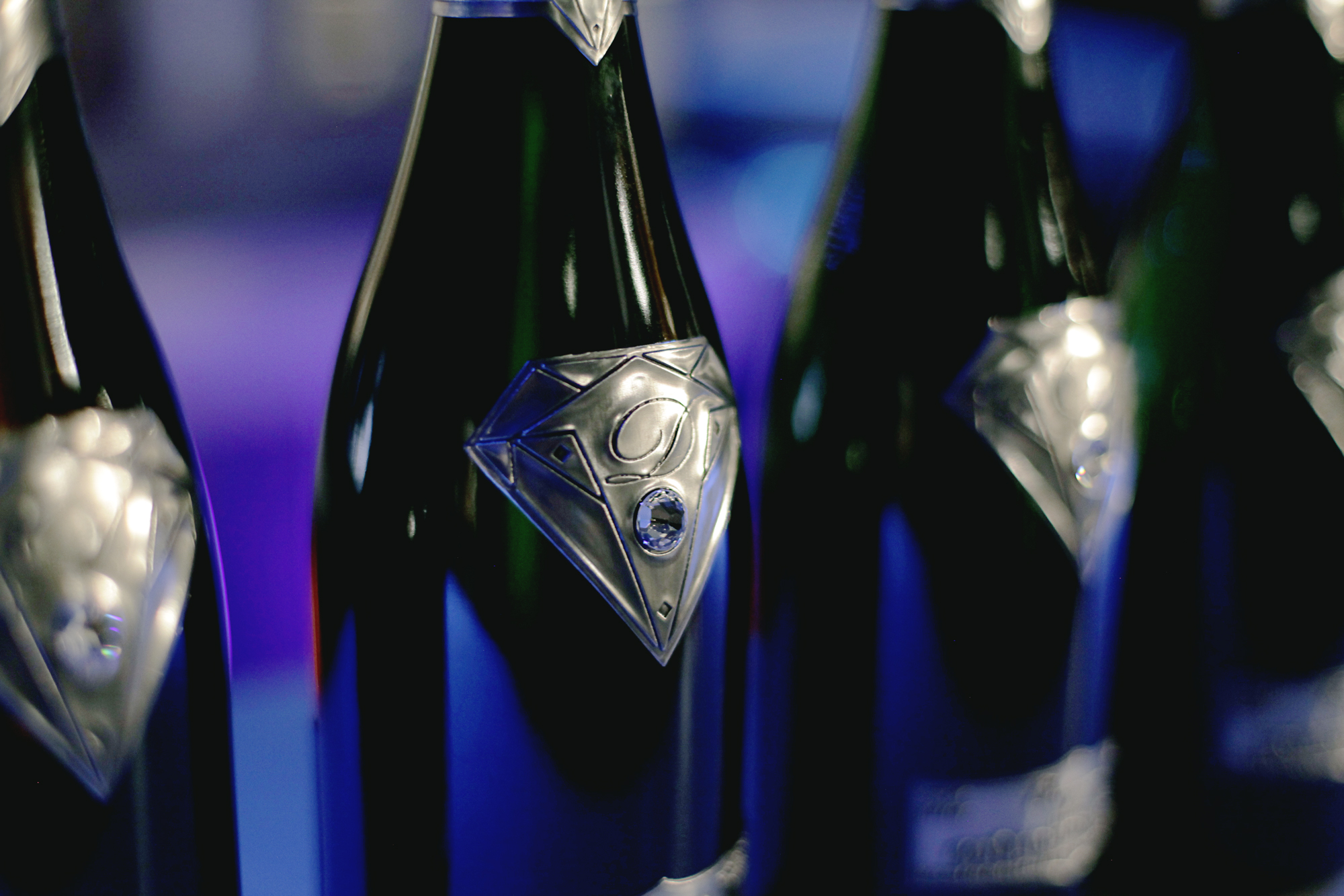 Každá jedna fľaša značky Gout de Diamonts je ozdobená veľkým briliantom od Swarowského.