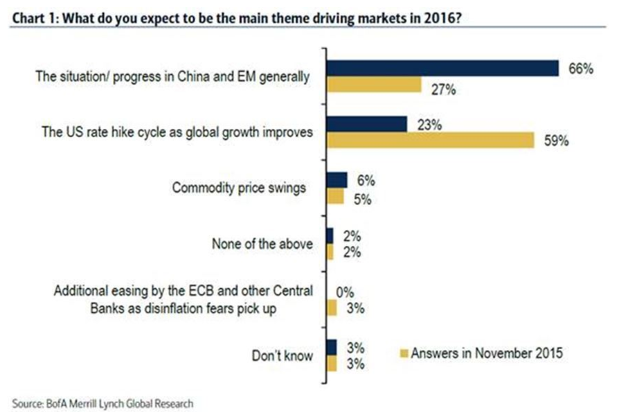 Vidno teda, že hoci od posledného prieskumu v novembri 2015, zvýšil FED úrokové miery, trh napriek tomu zameral svoju pozornosť mimo FEDu, smerom na Čínu.